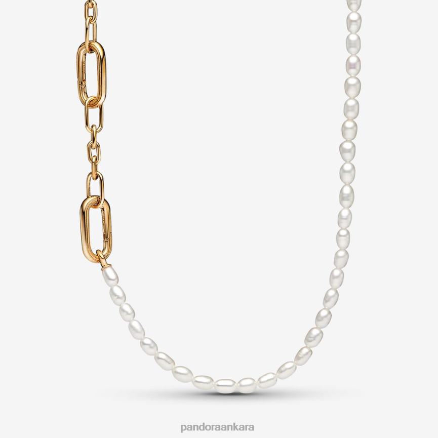 me ince işlenmiş tatlı su kültür incisi kolye 82N8H741 Pandora altın kaplama