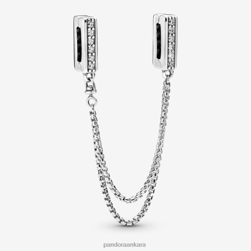 Yeni bir stil katmanı ekleyin ve bu ışıltılı güvenlik zinciri klipsi cazibesi ile pandora Reflections bilekliğinizin asla kaymadığından emin olun. güzel dökümlü zincirler ve klipslerdeki zarif detaylar bu güvenlik zincirini benzersiz bir konuma getiriyor. 12 kübik zirkondan oluşan setin arkasında pandora logosu bulunur, böylece ruh halinize veya istediğiniz ifadeye göre çevrilebilir.