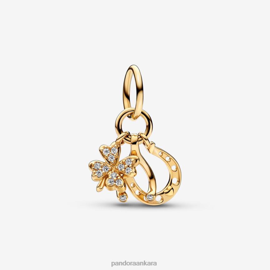 Şanslı yonca, lades kemiği ve at nalı sallantılı nazarlık 82N8H197 Pandora altın