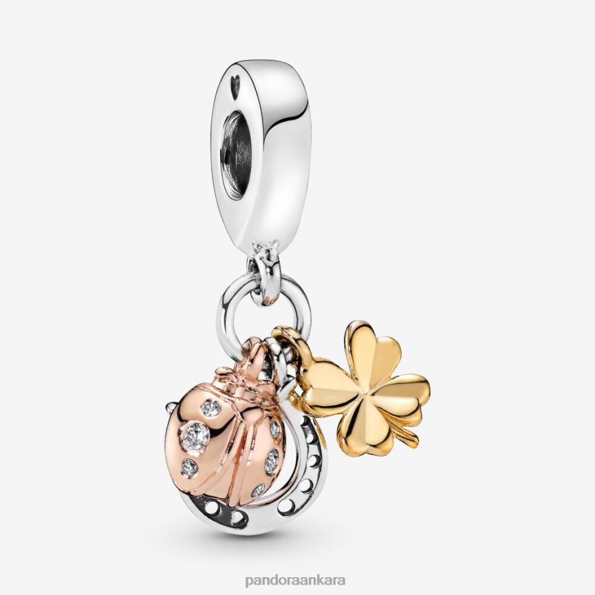 at nalı, yonca ve uğur böceği sarkan çekicilik 82N8H283 Pandora üç tonlu