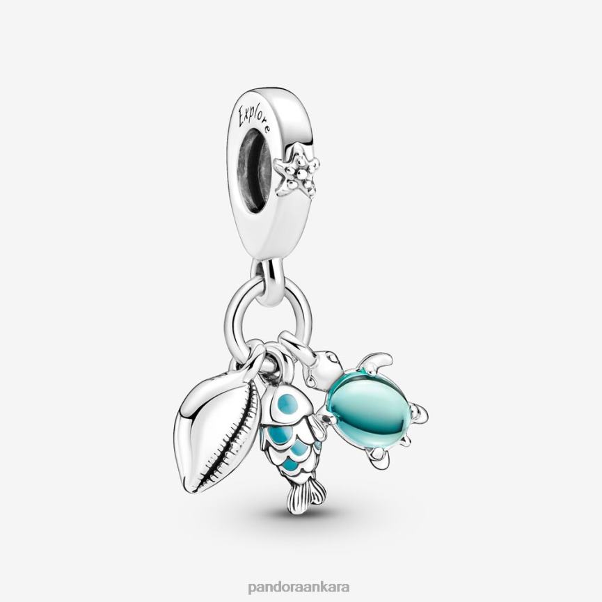balık, deniz kaplumbağası ve deniz kabuğu üçlü sarkan çekicilik 82N8H157 Pandora som gümüş