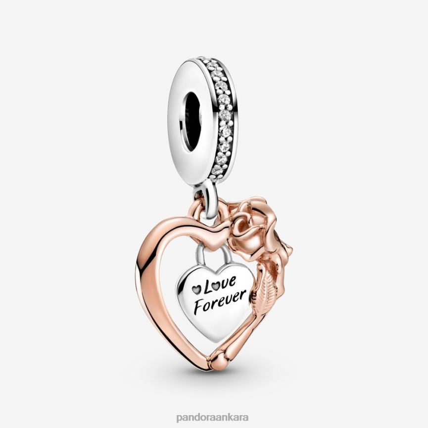 kalp ve gül çiçek sallantılı çekicilik 82N8H215 Pandora iki ton