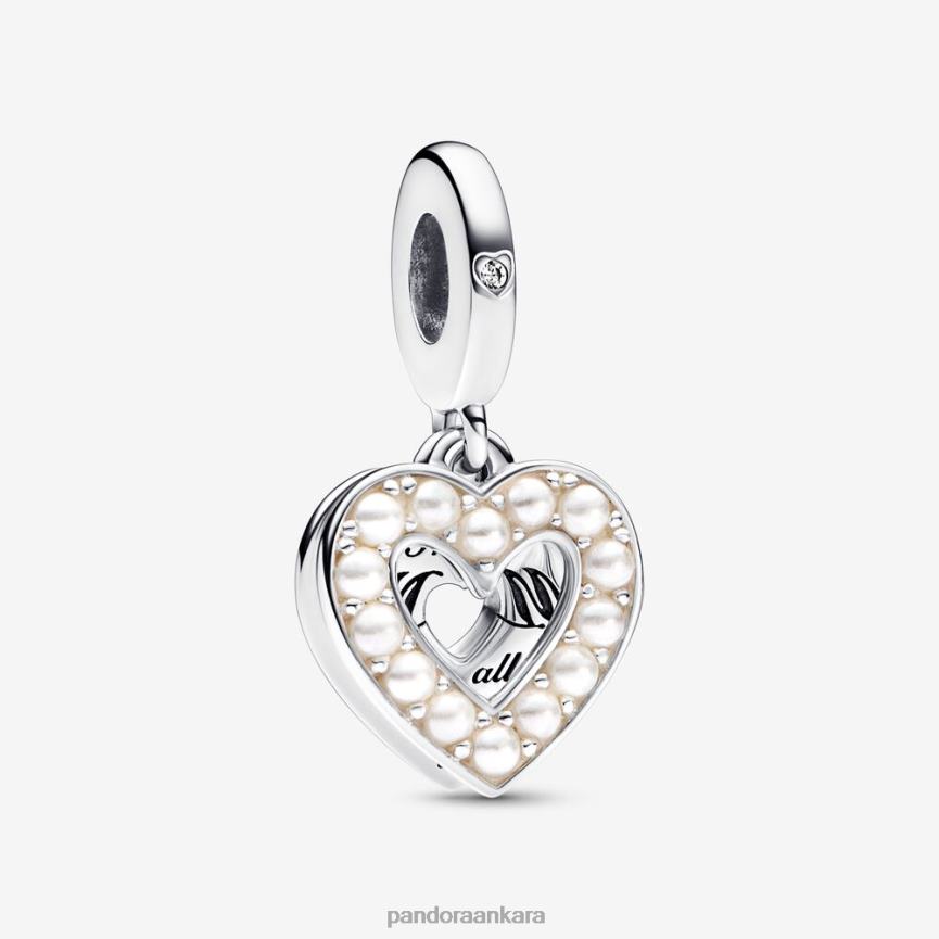sedefli kalp çift sarkan çekicilik 82N8H192 Pandora som gümüş/beyaz